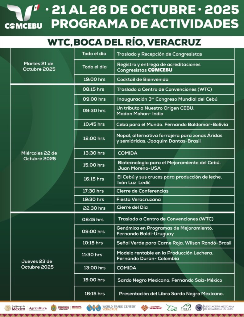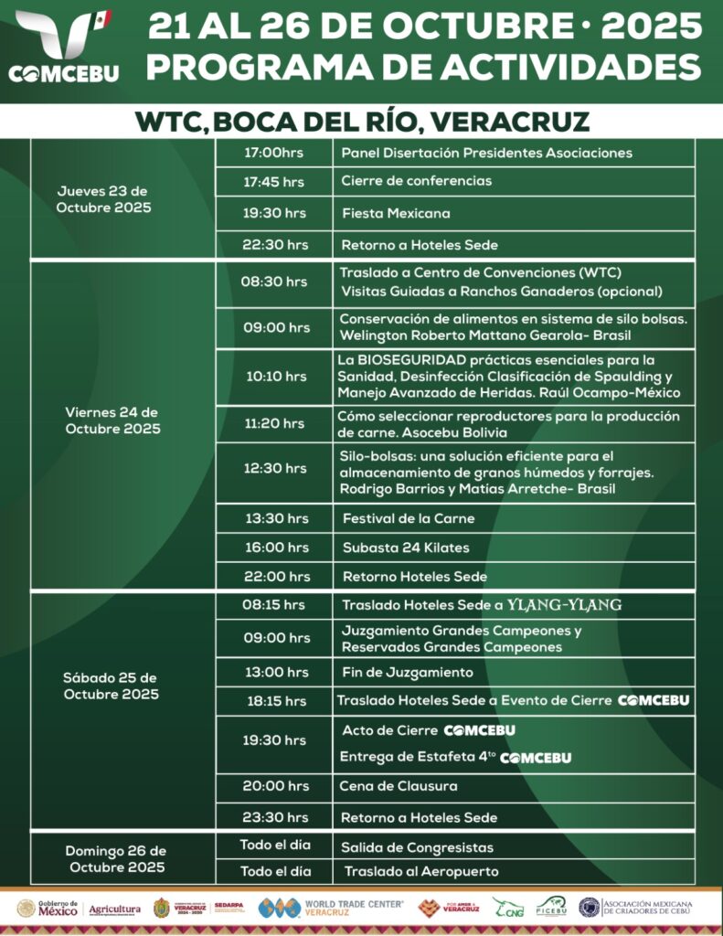 Del 21 al 26 de octubre de 2025, en el World Trade Center de Boca del Río, Veracruz, viviremos seis días de conferencias, networking, exposiciones comerciales y actividades ganaderas de primer nivel.